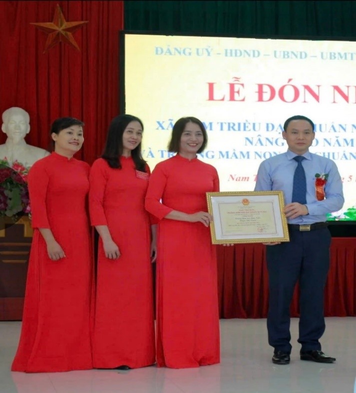 Với chúng tôi – giáo viên trong trường, cô không chỉ là một người quản lý giỏi mà còn là tấm gương sáng để chúng tôi học hỏi. 27 năm công tác trong ngành giáo dục, cô luôn hoàn thành xuất sắc mọi nhiệm vụ được giao. Từ một cô giáo giảng dạy trực tiếp đến khi đảm nhận vai trò Bí thư Chi bộ, Hiệu trưởng nhà trường, cô đã góp phần không nhỏ vào việc nâng cao chất lượng giáo dục mầm non huyện Phú Xuyên nói chung và tại Trường Mầm non Nam Triều nói riêng.