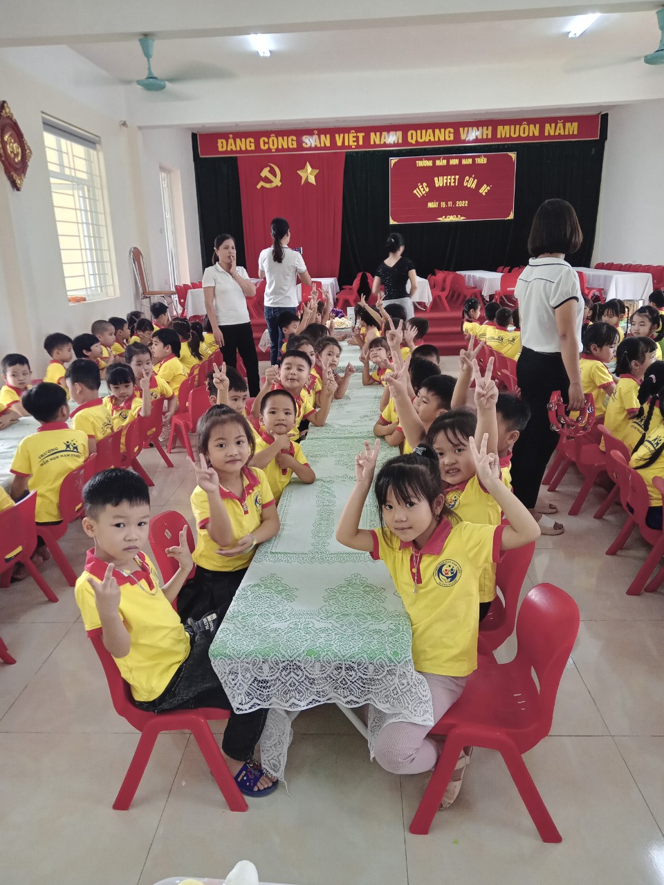 Sáng ngày 15/11/2022 tập thể CB, GV, NV nhà trường kết hợp cùng hội cha mẹ học sinh tổ chức cho các bé bữa tiệc Buffet. bữa tiệc diễn ra trong không khí vui vẻ và sôi động