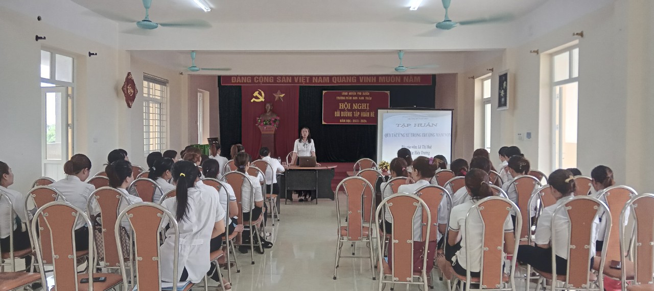 Trong 2 ngày 29/7/2023 và ngày 01/08/2023 BGH và các tổ chuyên môn tổ chức bồi dưỡng đầu năm học. 100% giáo viên và nhân viên trong nhà trường tham gia bồi dưỡng thường xuyên. Đây là 1 nhiệm vụ quan trọng nhằm bồi dưỡng và củng cố lại một số kiến thức cơ bản cho đội ngũ GV.NV trong nhà trừơng để chuẩn bị bước vào 1 năm học mới.