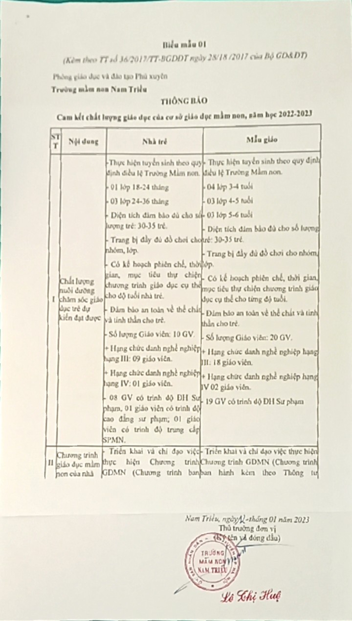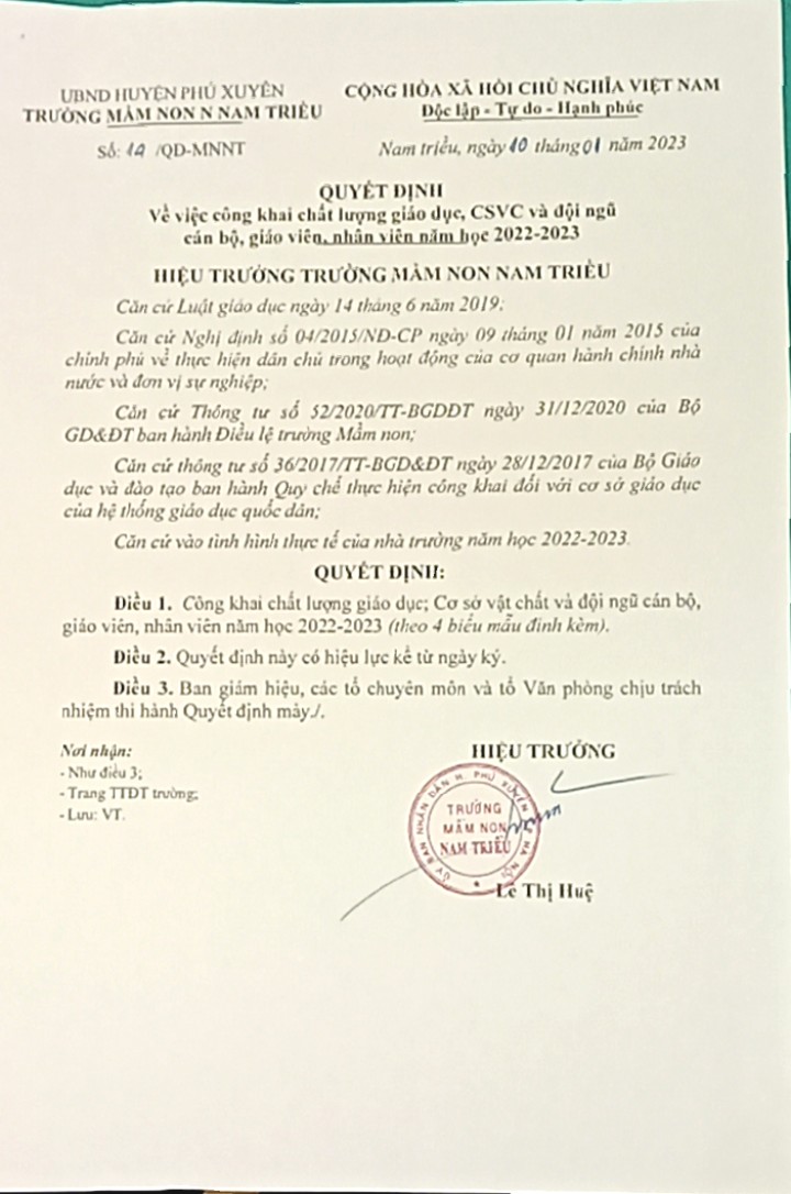 QUYẾT ĐỊNH CÔNG KHAAI CHẤT LƯỢNG GD VÀ CSVC NĂM HỌC 2022-2023